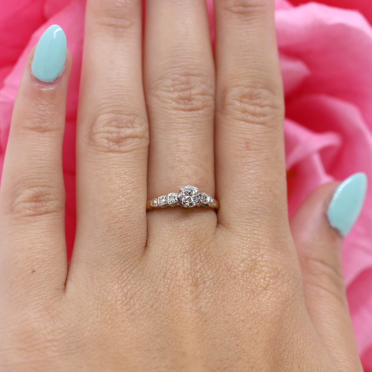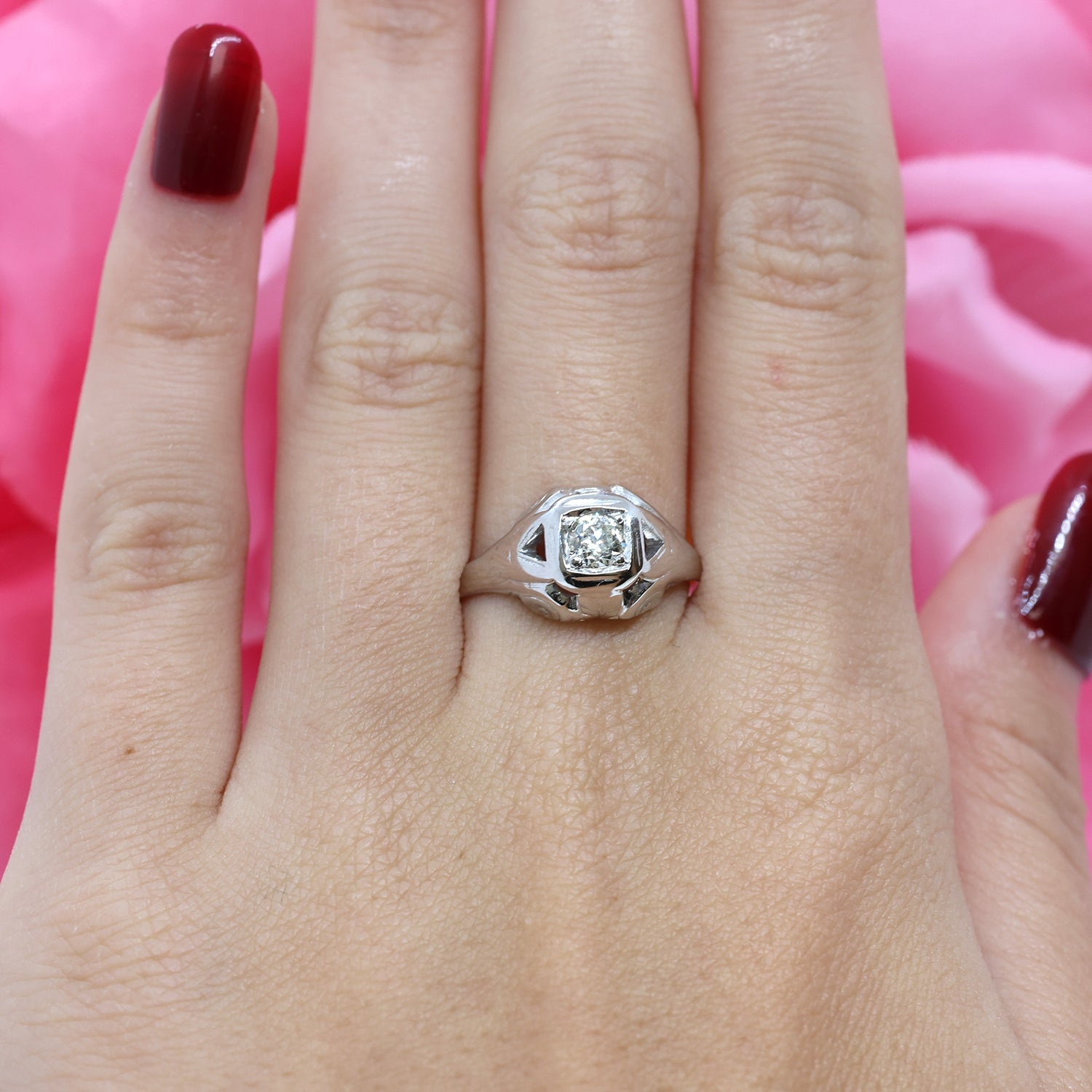 0.30 CT Solitaire Diamond Engagement Ring 18K White Gold Round Diamond Size 6