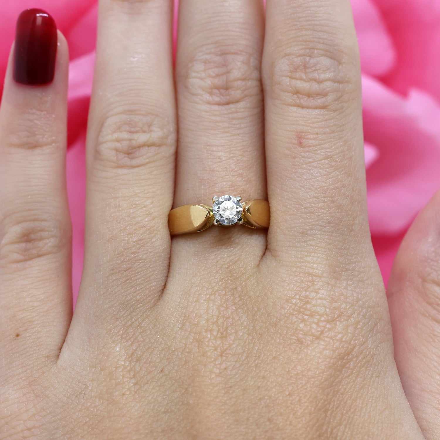 0.33 CT Solitaire Round Diamond Engagement Ring 18K Yellow Gold Size 5.5 Ladies