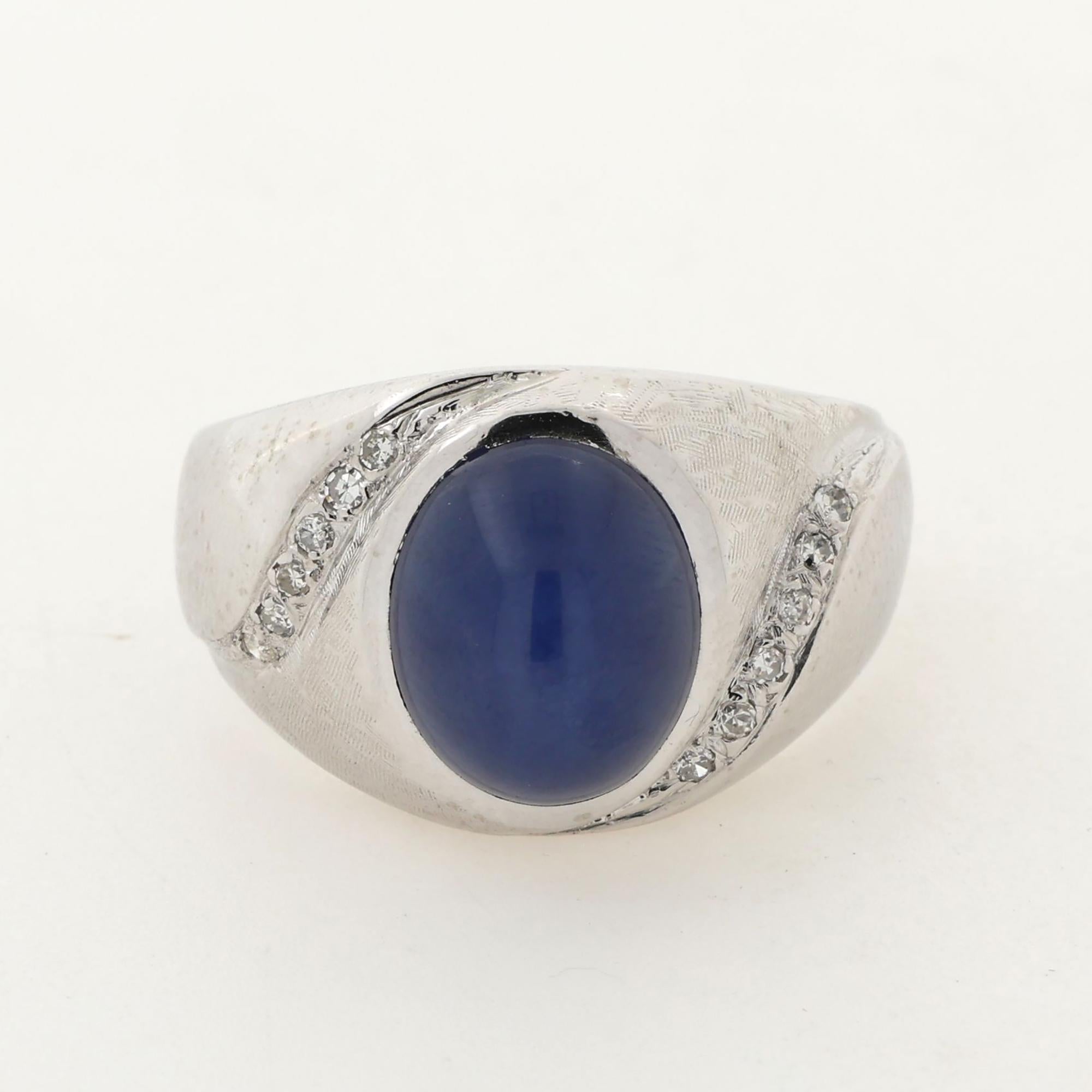 Star Sapphire Diamond Ring 10K White Gold Cabochon Gemstone 3.35 CTW Size 10.5