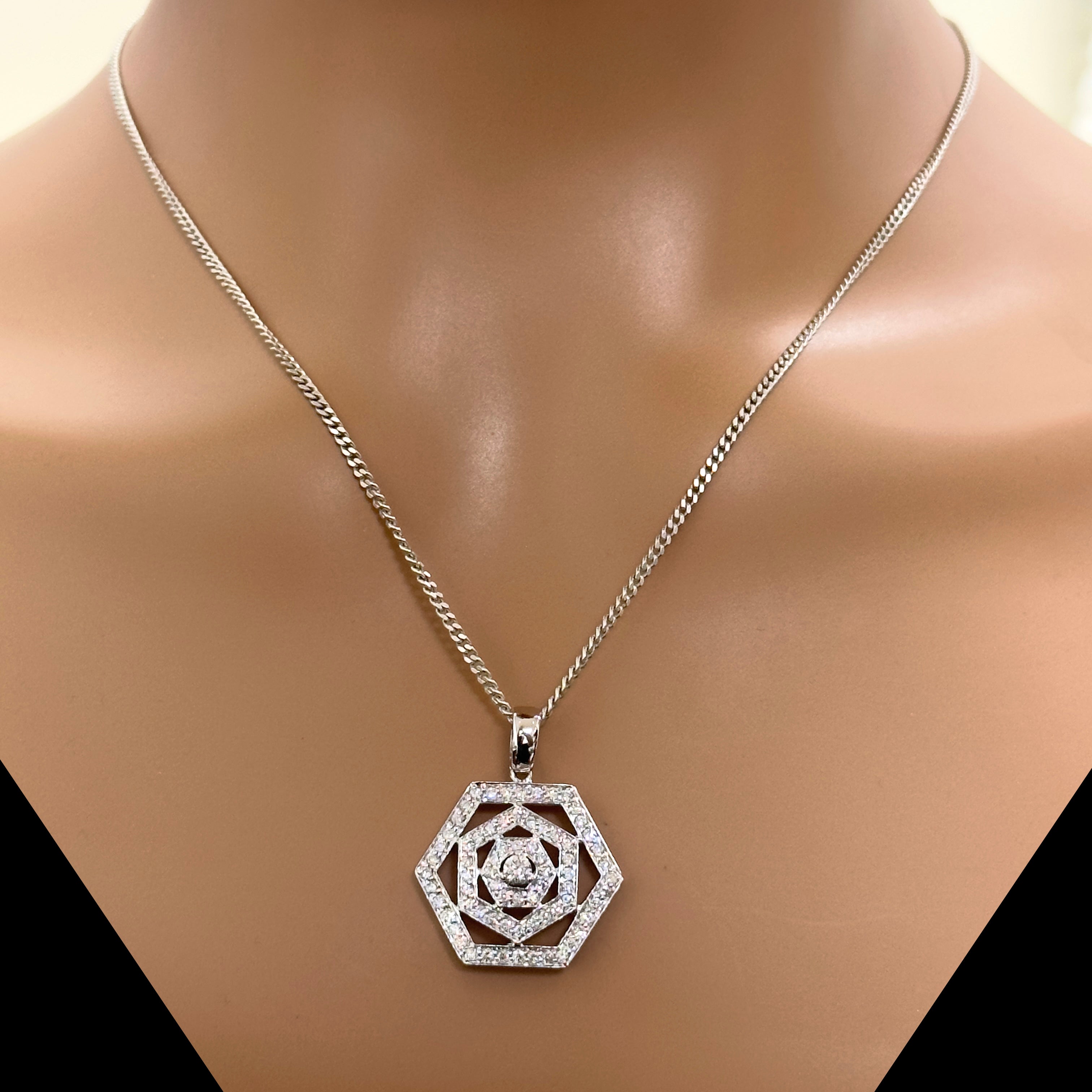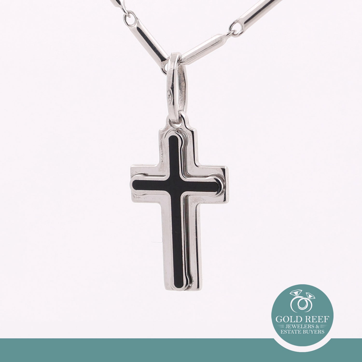 Religious Diamond Cross Pendant 14K White Gold 1.00 TW Diamonds 1.75" Estate