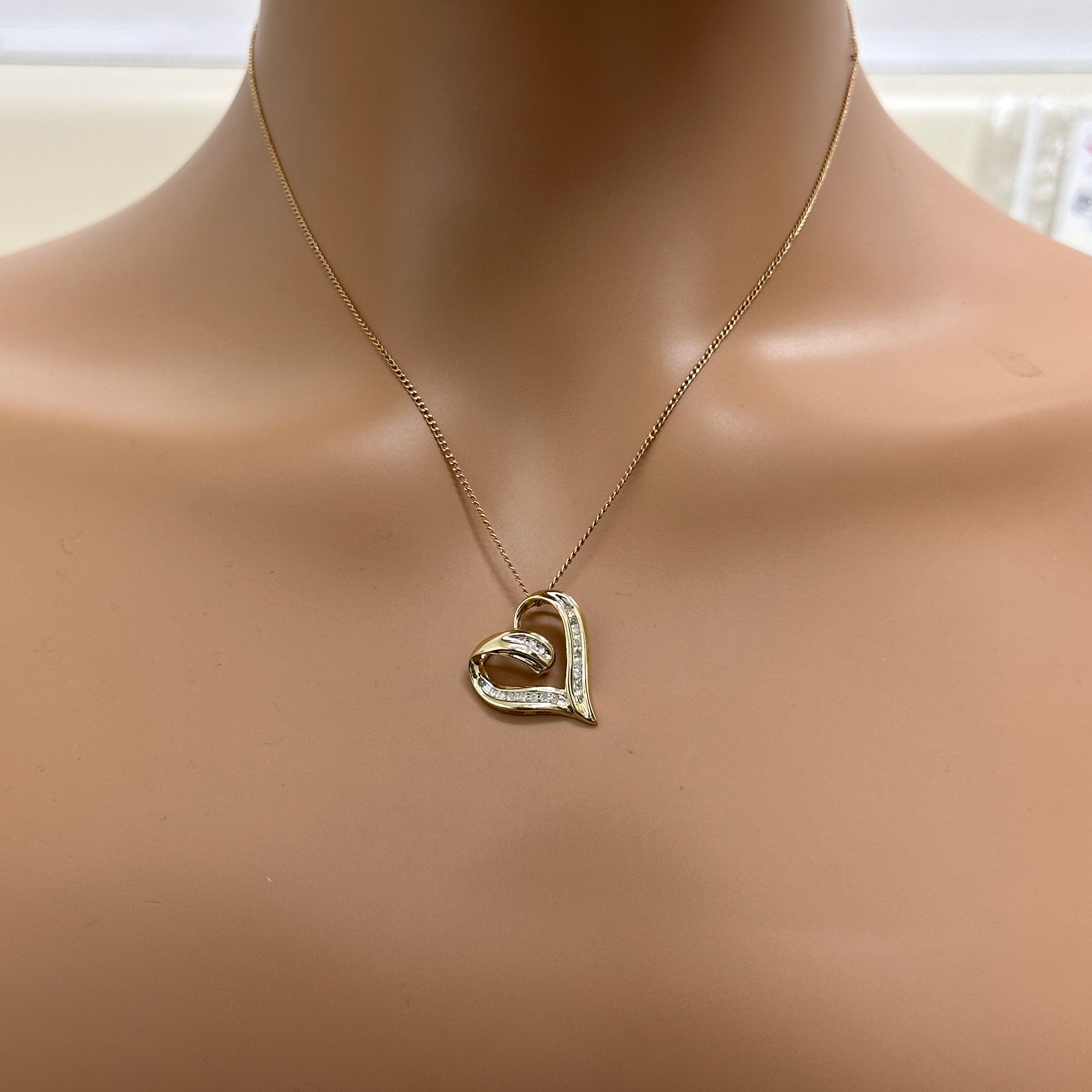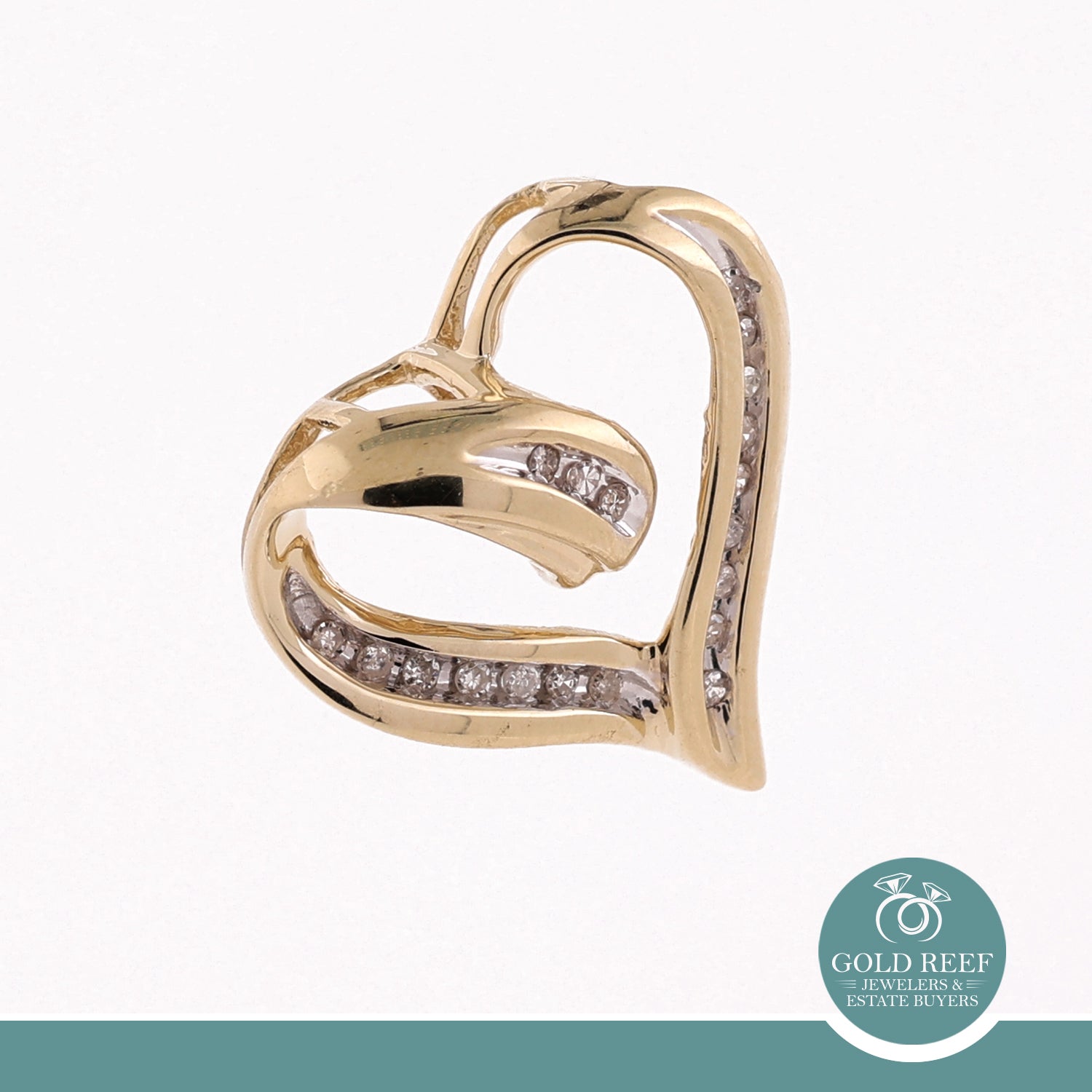 Sapphire Diamond Open Heart Pendant 14K Yellow Gold 2.59 CTW 1.40" Ladies Estate