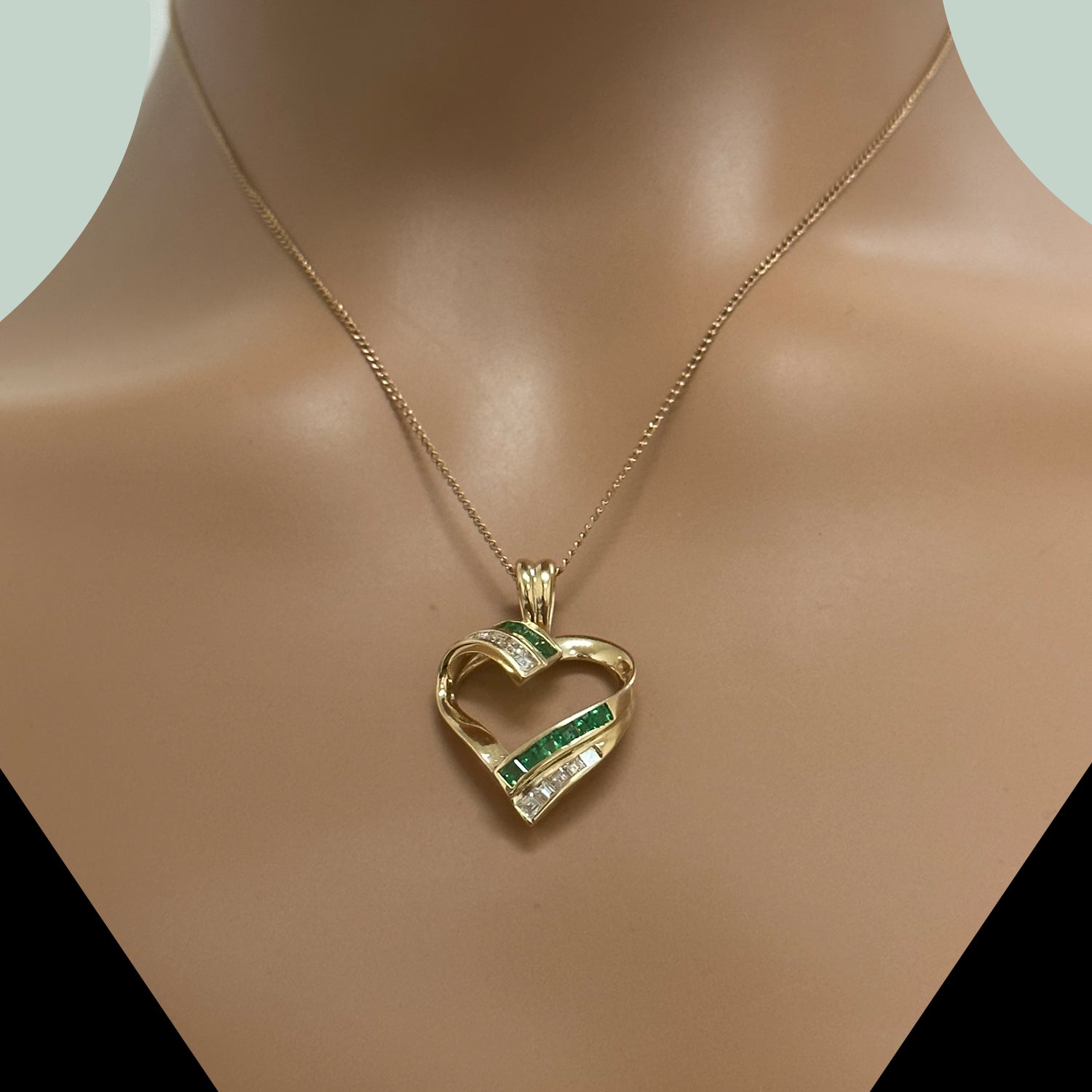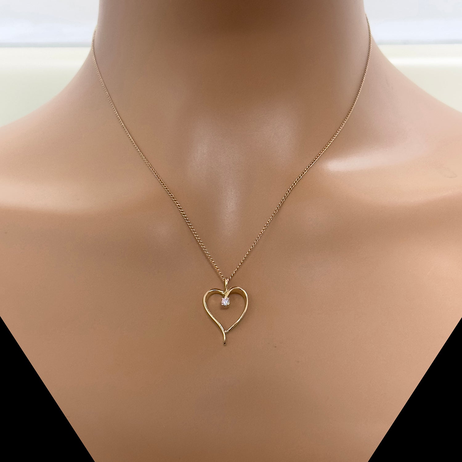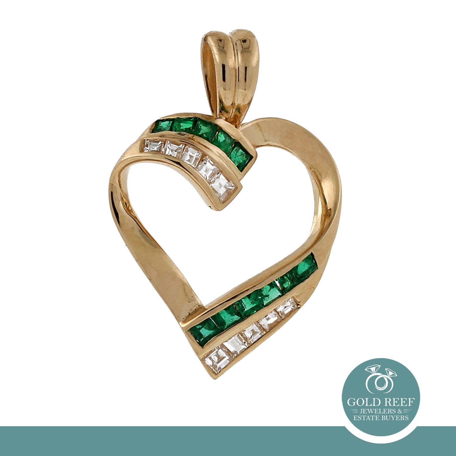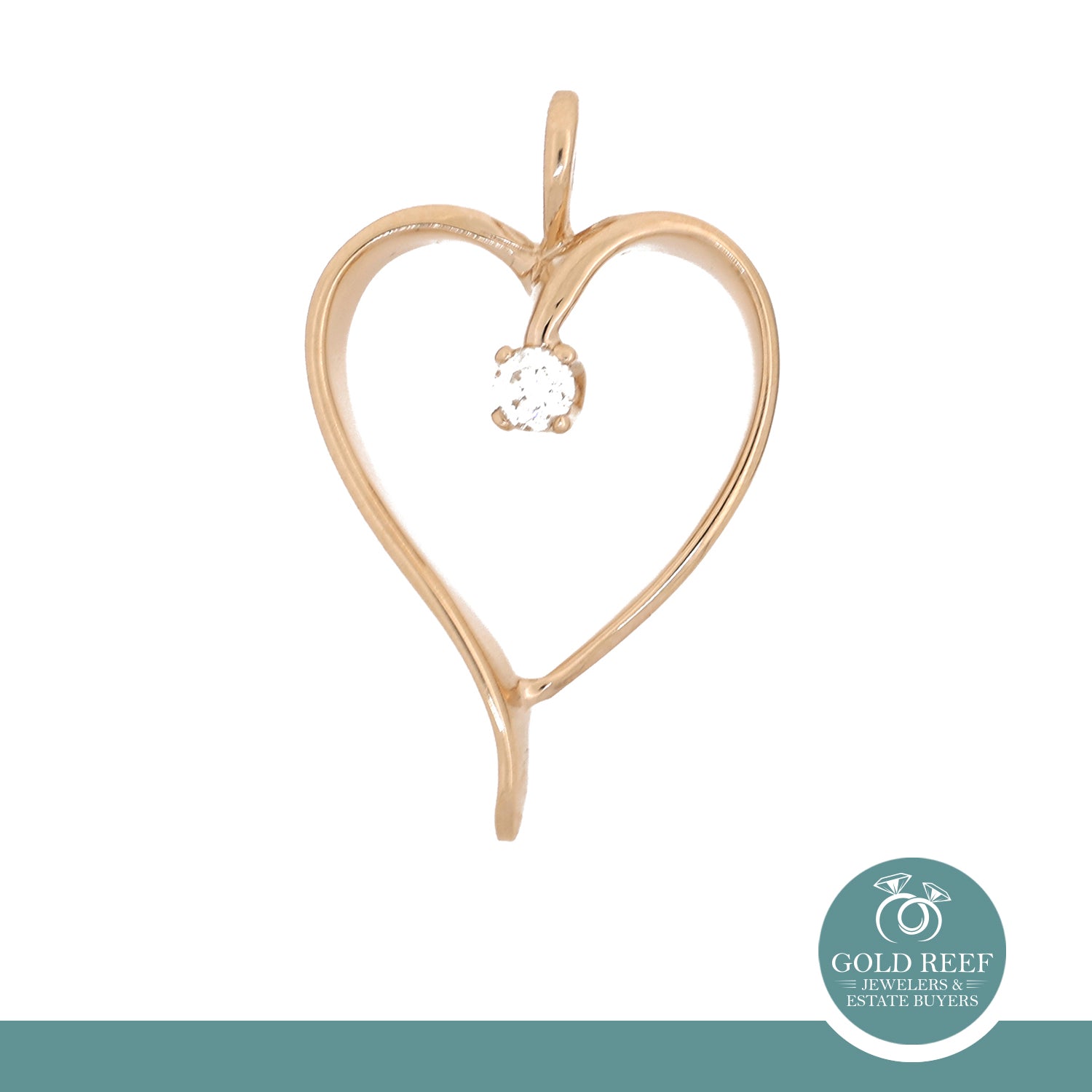 Sapphire Diamond Open Heart Pendant 14K Yellow Gold 2.59 CTW 1.40" Ladies Estate