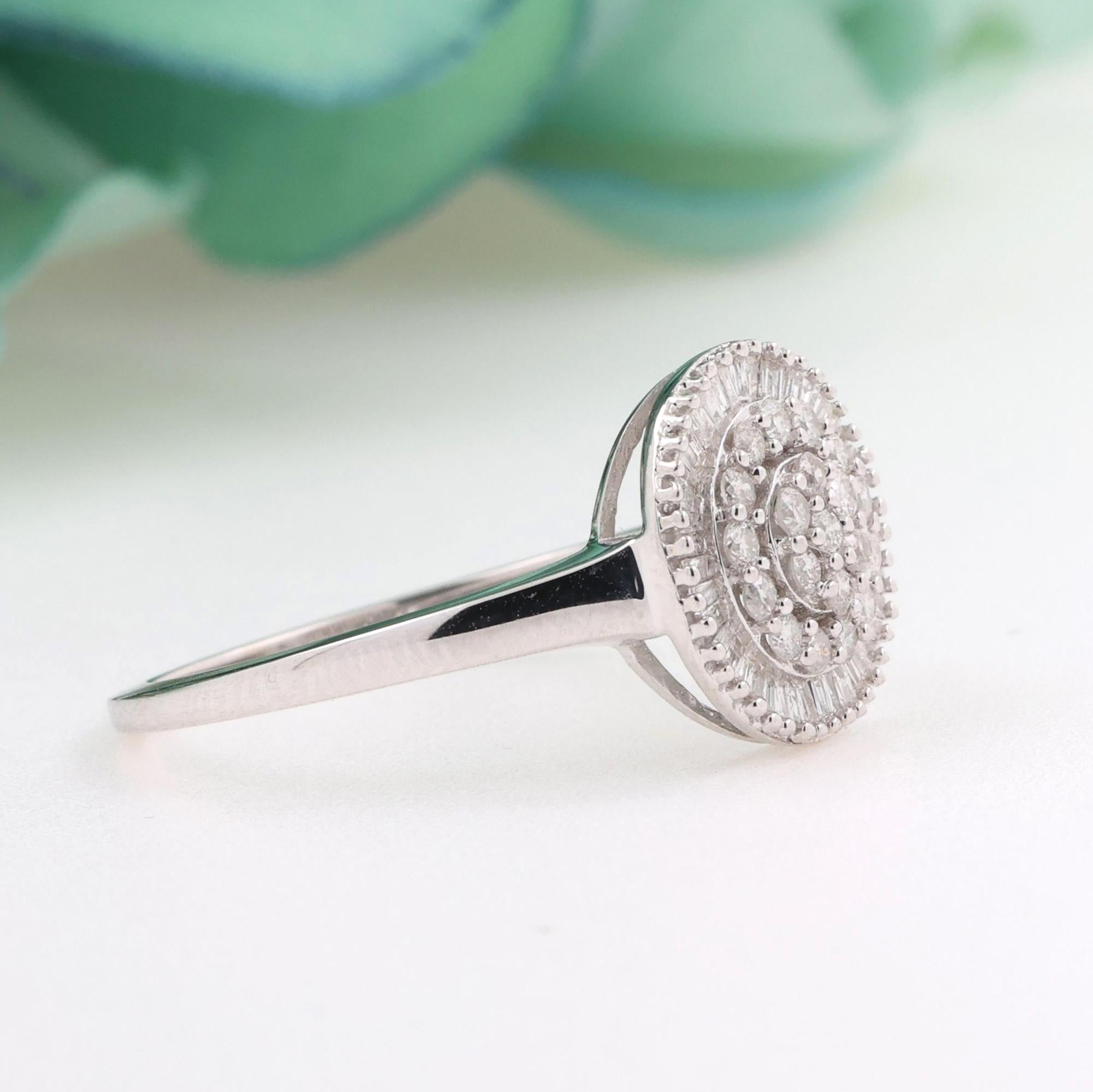 Cluster Diamond Circle Halo Ring 9K White Gold 1.05 TW Baguette Rounds Size 9